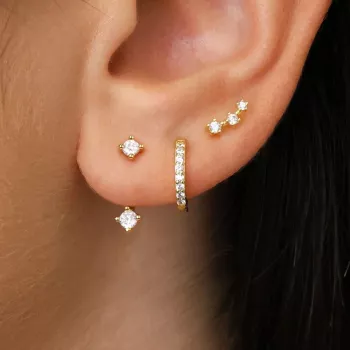 3 Pairs Huggie Hoop Earrings Set – 14K Gold Plated Stylish Jewelry