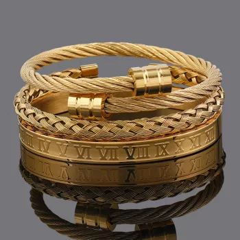 Luxury 3-Piece Stainless Steel Roman Numeral Bracelet Set