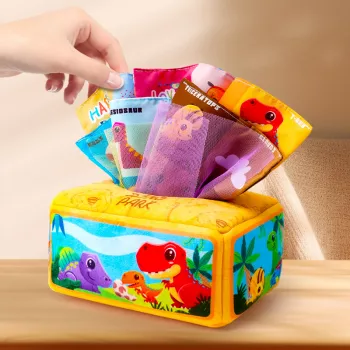 Montessori Baby Tissue Box Toy – Sensory Cloth Pull & Learn Playset