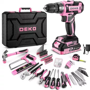 Pink 20V Cordless Drill Tool Kit with Complete Household Tool Set