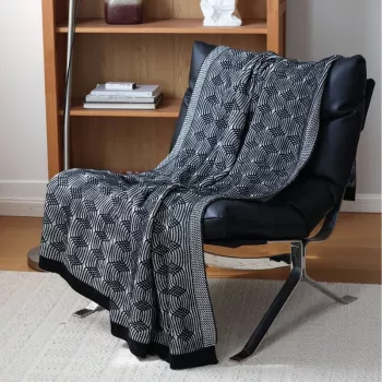 Black Geometric Knitted Throw Blanket Blue Modern Sofa Bedspread